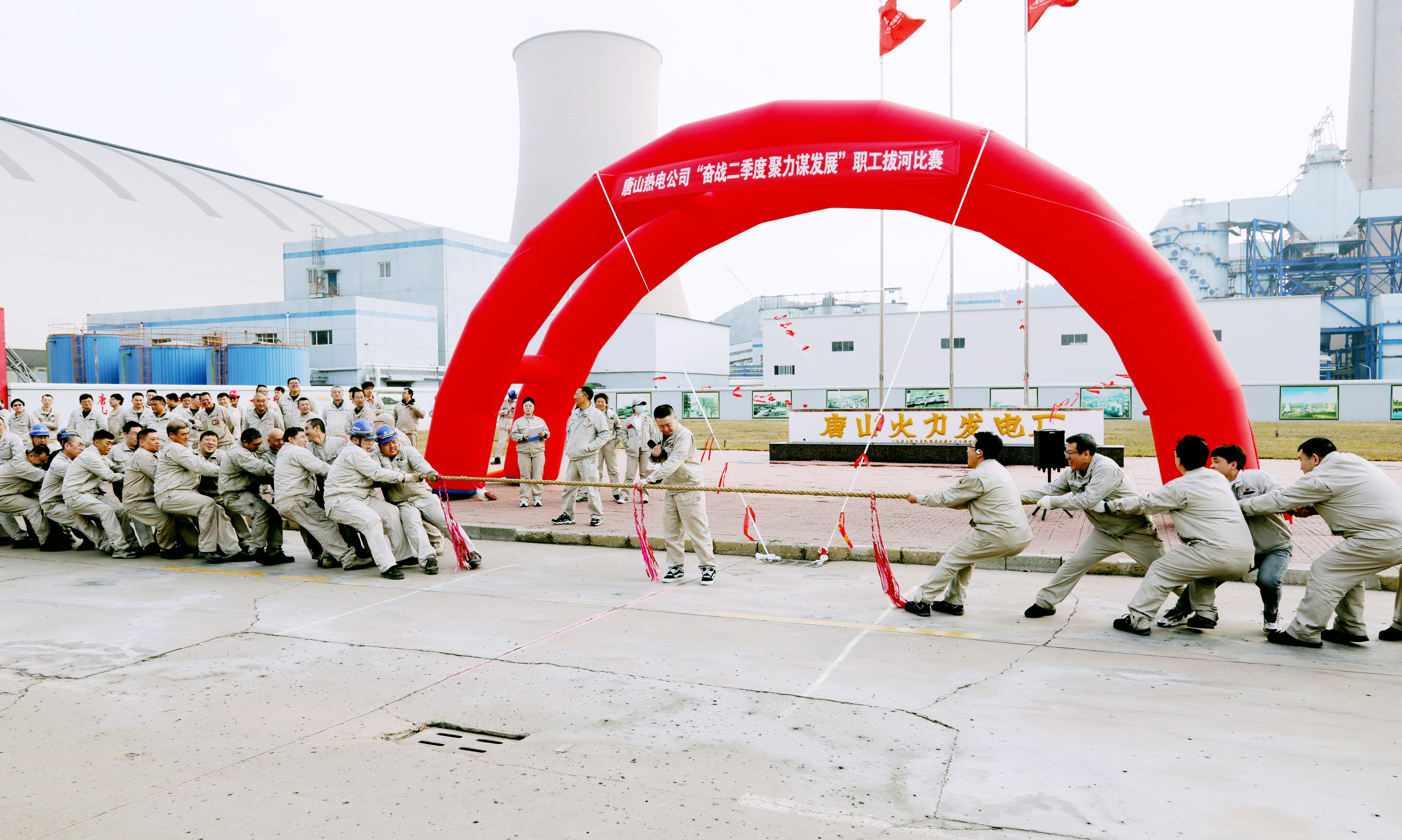 本网讯 为丰富职工业余文化生活,增强团队凝聚力和身体素质,营造团结、快乐、和谐、奋进的幸福大唐大家庭氛围,唐山热电公司工会于4月8日举行以“奋战二季度 聚力谋发展”为主题的职工拔河友谊比赛。