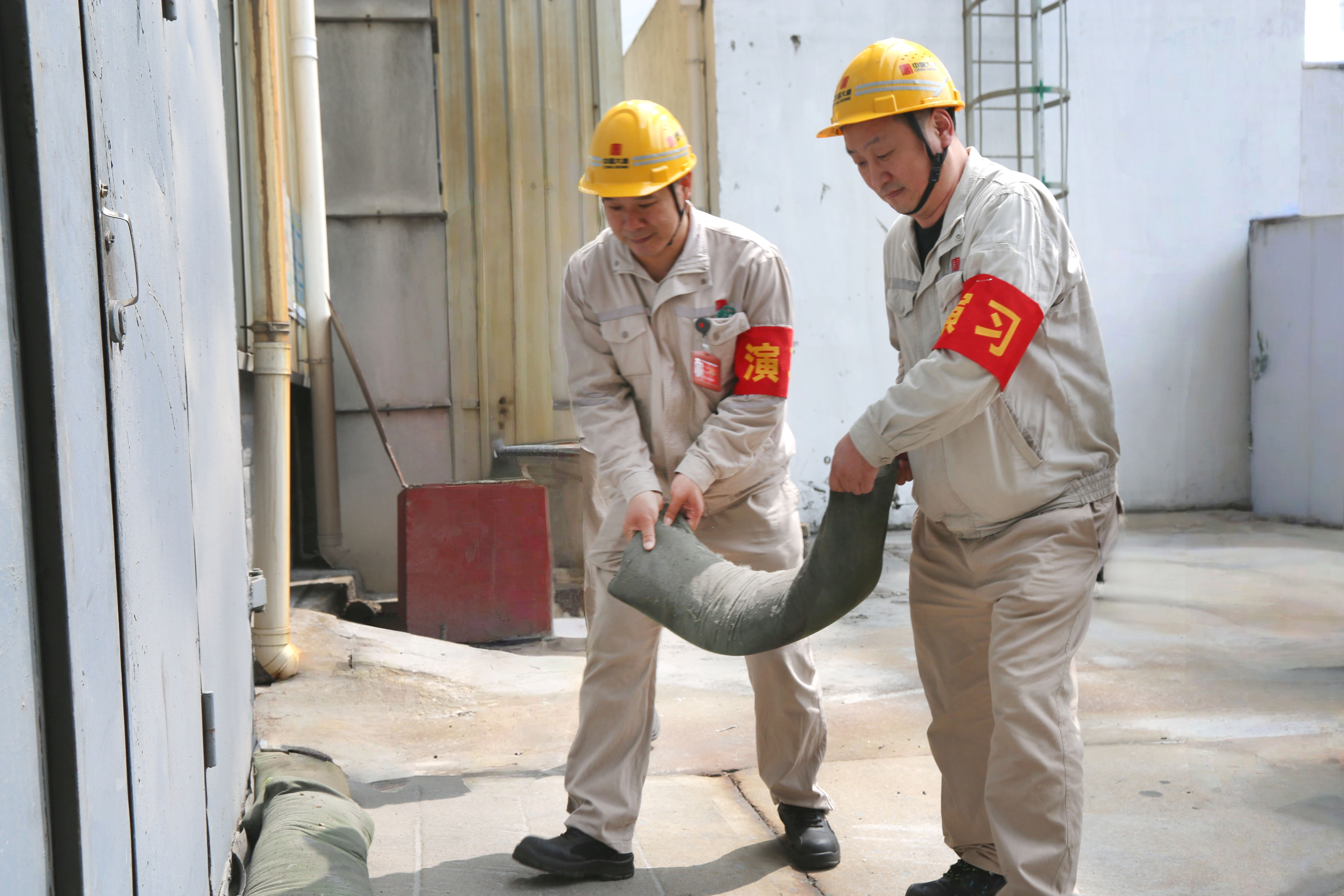 本次演练模拟持续强降雨天气,厂区雨水泵突发故障,排水系统失效,积水快速上涨并出现倒灌险情,严重威胁生产设备安全。该公司立即启动防汛应急预案,各应急小组迅速集结、分工协作。抢险人员快速架设防汛挡板,堆砌沙袋构筑防洪屏障,紧急增设临时潜水泵加快积水抽排,高效完成积水阻隔与排水处置。