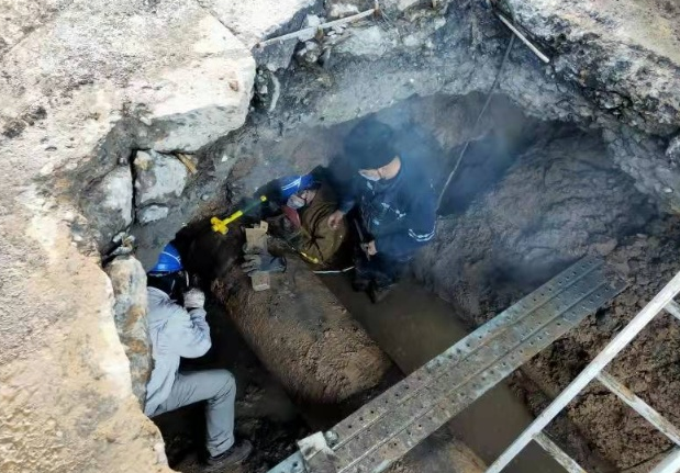 2021年12月27日傍晚,彬长发电公司煤场北侧深埋于地下的1号供水管突然泄漏,担负承运承检任务的西安热电厂职工组成党员突击队,冒着零下十几摄氏度的严寒,在冰冷刺骨的泥水中连续奋战三天三夜,终于抢修成功。